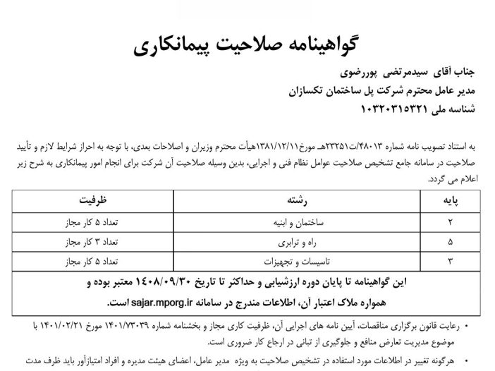 - کارفرما : سرمایهگذار، شرکت پل ساختمان تکسازان